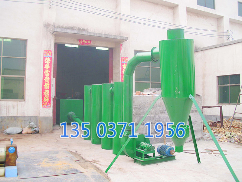 鋸末或者木屑直接由加料器加入氣流干操管中、 空氣由鼓風(fēng)機(jī)送人燃燒爐,經(jīng)過加熱,物料進(jìn)入氣流烘干機(jī)管的底部。高度的熱氣流,能夠使物料加速分散懸浮在氣流中,物料加速的干燥之后,被輸送的過程中完成對濕物料的干操。